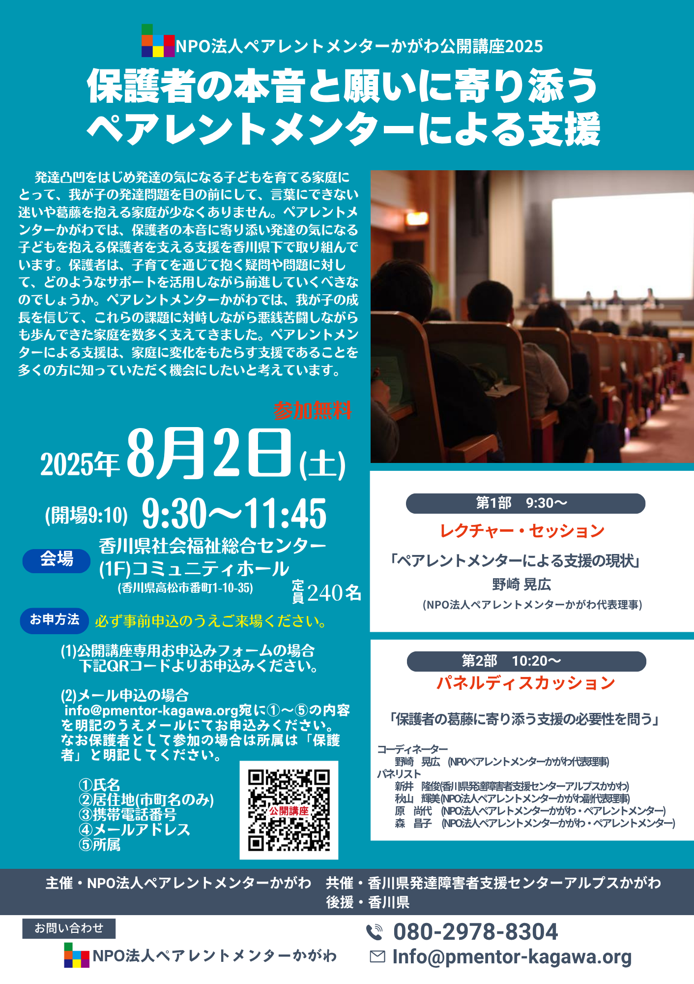 この度、ペアレントメンター支援の意義やペアレントメンターによる支援現場で起きている保護者支援の現状を知っていただく機会として公開講座を開催いたします。発達の気になる子どもを育てる保護者、子どもに関わる専門職者、行政関係者など多くの方にご参加いただき保護者支援と障害のある子どもや人々を取り巻く問題と課題を考える機会としたいと考えています。前回は、2021年度に開催して以来の公開講座となります。事前申込のうえご来場ください。